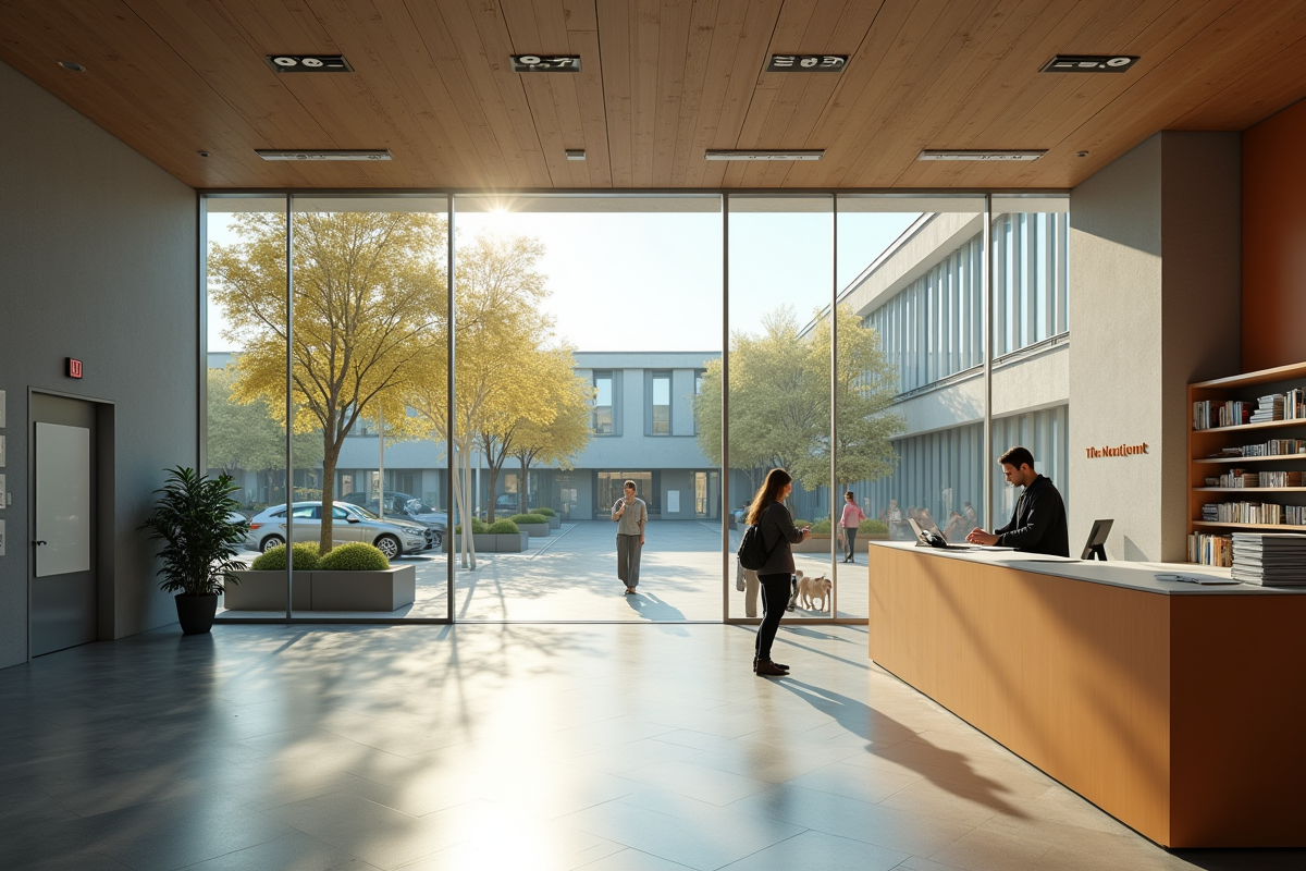 Entrée de la mairie avec documents d urbanisme et architecture moderne